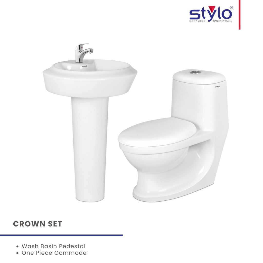 Complete Sanitary Set – Pedestal Basin & One-Piece Commode