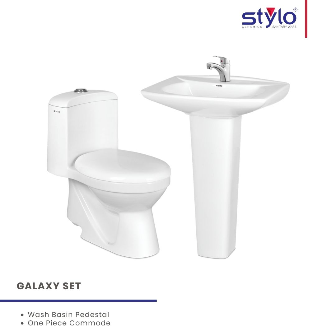 Complete Sanitary Set – Pedestal Basin & One-Piece Commode