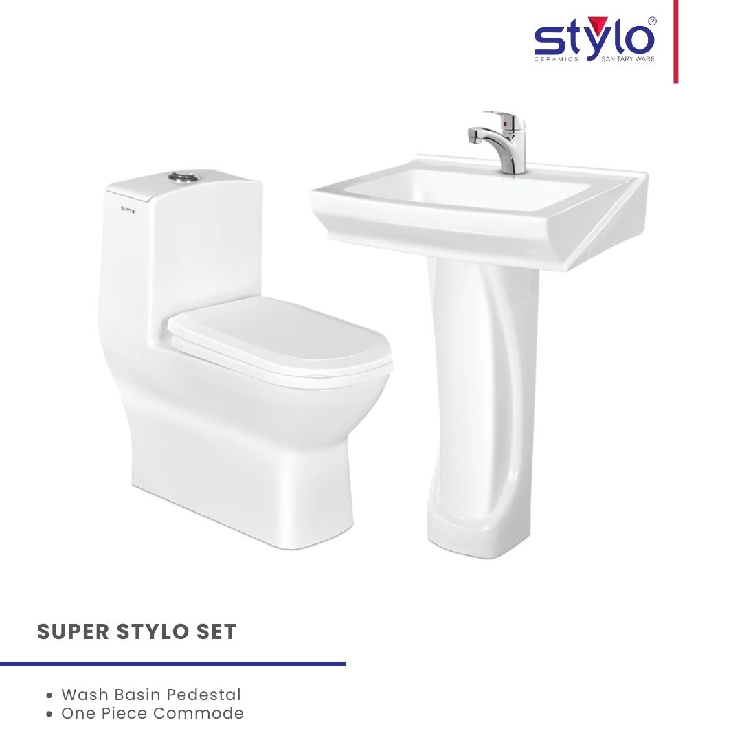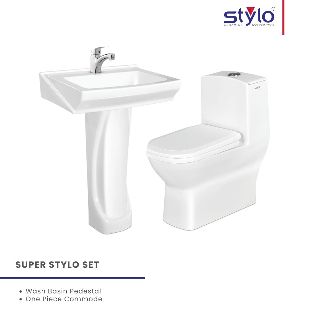 Enhance your bathroom with this premium Complete Sanitary Set, including a stylish basin with pedestal and a modern one-piece commode. Crafted for durability, comfort, and easy maintenance, this set is ideal for contemporary homes and commercial spaces. A perfect blend of design and functionality to elevate your washroom aesthetics.