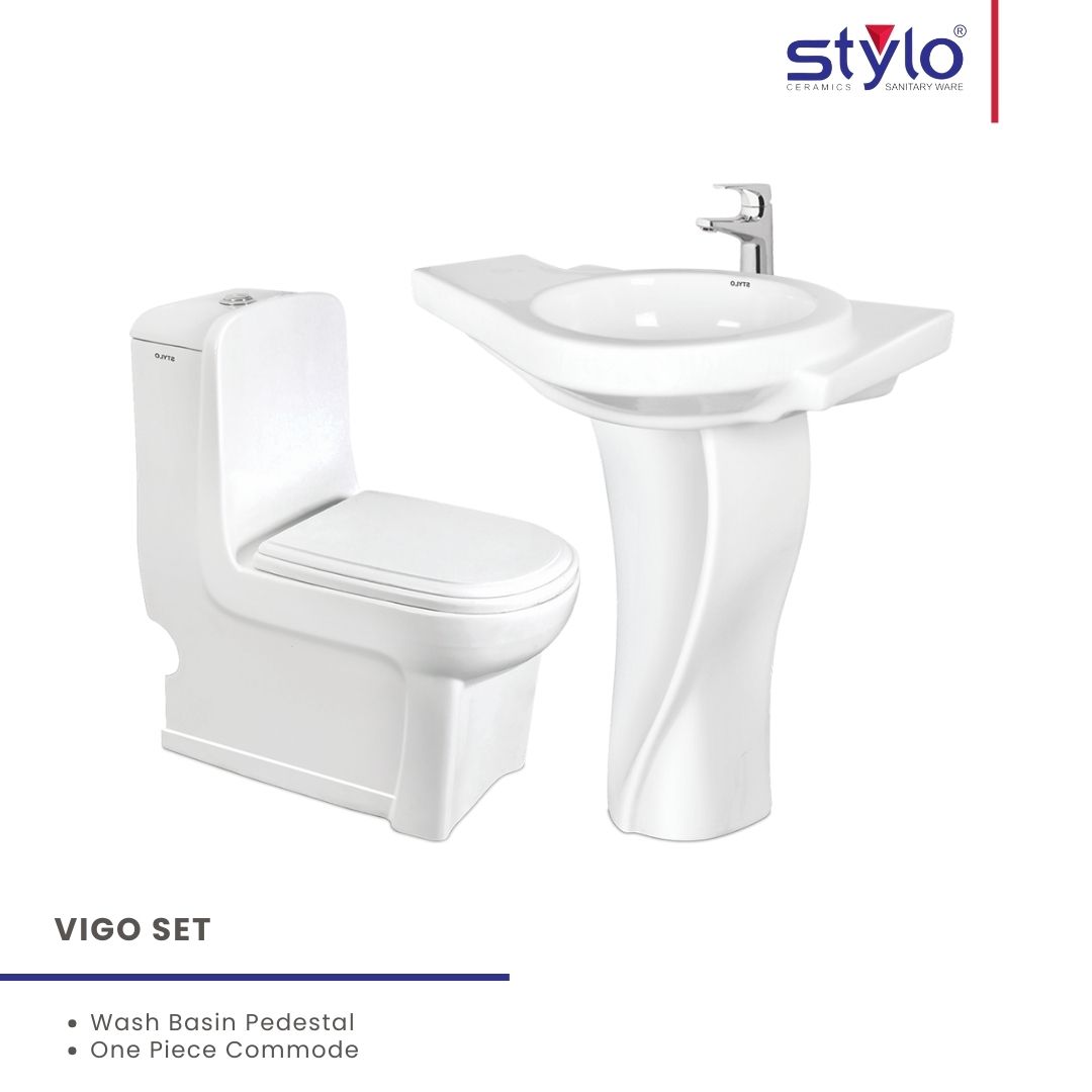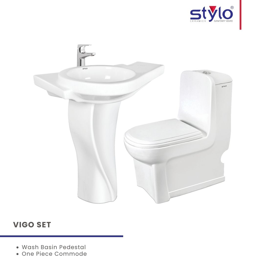 Bring modern elegance to your bathroom with this Complete Sanitary Set, featuring a stylish pedestal basin and a sleek one-piece commode. Designed for long-lasting durability, everyday comfort, and low-maintenance care, this set is ideal for both residential and commercial use. A perfect blend of contemporary design and reliable functionality to enhance any bathroom space.